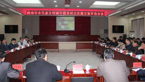 作为西部地区水利部直接审查的唯一代表,2013年12月30日,水利部在陇南市主持召开《方案》审查会,水利部水资源司副司长陈明、水利部水资源司原司长高而坤、水利部政策法规司原司长赵伟、水利部长江水利委员会副主任陈晓军、水利部水资源司相关处及水利部景区办、水利部长江水利委员会、黄河流域水资源保护局、甘肃省水利厅等12位专家出席会议,会议由长江水利委员会副主任陈晓军主持。审查组听取了实验室筹建办赵勇副主任的汇报,一致认为:《方案》密切结合陇南市实际,提出了陇南市水生态文明建设指导思想、基本原则、建设目标、总体布局、建设内容和示范工程,思路清晰、重点突出、特色鲜明、创新显著,同意《方案》通过审查,建议尽快按规定程序报批。