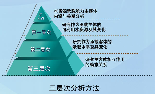 主要研究内容:1)水资源承载能力的基本概念、定义和内涵;2)以合理配置为手段、提高承载能力为目的的水资源承载能力三层次分析方法;3)针对中国水资源特点的承载能力双指针指标体系;4)客体承载水平分级体系;5)以单位GDP综合耗水量评判法和人均耗水量评判法为核心的两套水资源承载能力评价方法;6)承载能力实例分析(包括具有不同气候区特点和不同尺度范围的流域或行政区域的五个案例区)。