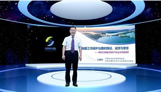 王建华的专题讲座聚焦江河保护治理实践核心,不仅阐述了江河的形成演变规律与六大核心属性功能,更深入梳理国家江河战略的演进背景与发展脉络;同时详细介绍了以幸福河为导向、分区分类型江河保护治理的路径,包括目标、布局、策略和举措;最后对党的十八大以来江河保护治理取得的成效进行了系统、定量的解析,展望了未来治理蓝图与发展愿景。互动环节中,王建华就听众提出的幸福河在江河安澜保障、水质提升、水生态修复方面的成功案例经验、京杭大运河在文化传承和区域经济发展等方面的积极影响、我国江河生态修复领域的重点等进行了交流讨论。