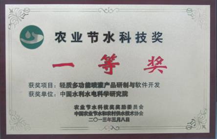 2013年7月21日,2012年度农业节水科技奖颁奖大会在哈尔滨隆重举行,实验室李久生教授主持完成 “轻质多功能喷灌产品研制与软件开发”获农业节水科技一等奖。项目从喷灌设备研发与喷灌系统设计及管理技术两个层面入手,围绕管道式喷灌的系统设计、关键设备、运行控制、性能评价等关键产品与技术开展研究。在喷头方面,发明了具有记忆功能的喷头旋转角度控制装置和自动换向装置,形成了散射式、涡轮驱动和齿轮驱动三种类型升降式喷头的多功能系列产品;在喷灌管道方面,发明了新型镁合金喷灌移动管道材料配方和防腐处理工艺,开发出重量比常用铝合金管道低30%的轻质镁合金管道及其配套管件,研制出喷灌给水控制阀;在喷灌系统设计和管理技术研究方面,研制出调压罐与变频结合的恒压喷灌系统及运行管理规程,开发出喷灌系统管网布置与水力计算软件、智能型恒压喷灌系统控制软件、喷灌均匀系数模拟计算软件和喷灌水利用率及其对环境调节模拟软件。授权发明专利10件,实用新型专利2件,实现了喷头和镁合金移动管道的产业化;获得软件著作权登记6件。成果在北京、河南、山西、内蒙古、河北、黑龙江、山东、浙江等地推广应用,经济和社会效益显著。