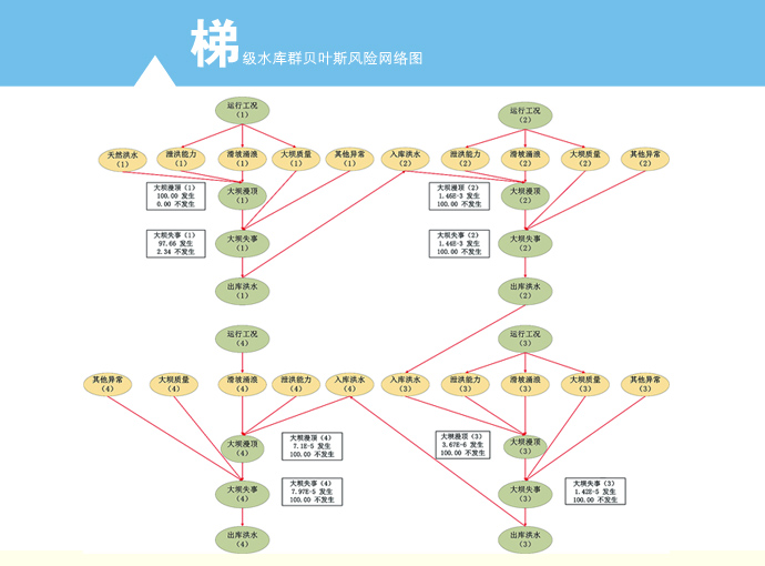 梯级水库群全生命周期的风险评估是构建梯级水库群风险设计与风险调控的基础,重点是量化计算梯级水库及水库群的失效概率。项目通过对大渡河流域风险因子的识别与分析,揭示了大渡河流域梯级水库群风险的孕育机制与传导路径,在此基础上构建的大渡河流域梯级水库群贝叶斯网络,具有定量评估大渡河流域梯级水库及库群失效概率的能力,为确定梯级水库群中的薄弱环节、提出针对性的工程和非工程措施奠定了基础。同时,项目综合运用物理模型、数值模拟模型、统计模型,结合梯级水库群的监测信息,动态评估梯级水库群及各组成部分的风险水平,为实现梯级水库群的风险设计与风险调控提供了技术支撑。