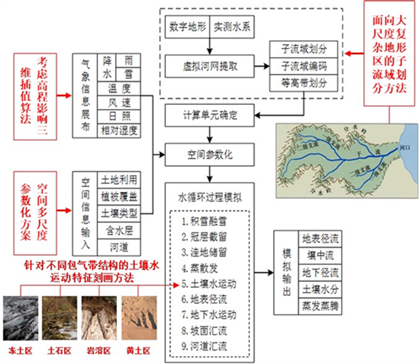 (3)考虑气候-地形-地貌-地质-土壤-植被等要素影响下区域产、汇流的时空异质性,首次构建了基于能量过程模拟的全国分布式水文模型WEP-CN。