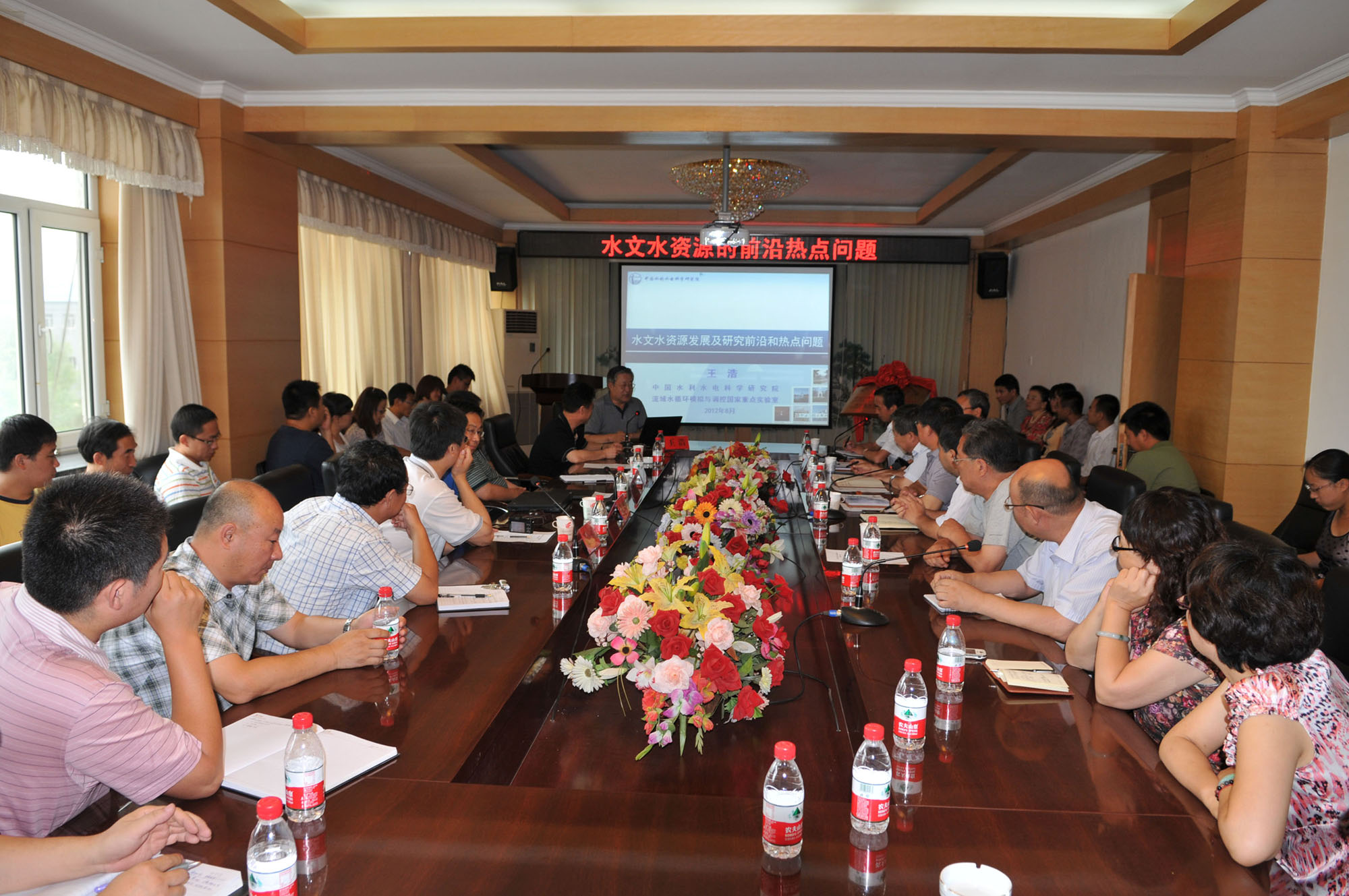 揭牌仪式结束后,实验室主任王浩院士作了题为《水文水资源发展及研究前沿热点问题》的学术报告,总结评述了水文学及研究发展概况、水资源及研究发展概况和水文水资源研究整体发展趋势;介绍了IHP关注热点和国际水文水资源研究重点领域;强调了水文水资源研究要以国家战略需求为导向,以应对我国水问题发展新情势为目标,构建和完善现代水文水资源学科体系;从战略高度在机理识别、评价预测、综合调控和应用支撑等方面提出了水文水资源研究的前沿和热点问题。最后结合牧区水利实际,与牧科所科研人员开展了互动交流,并就牧区水利发展和草原生态保护提出了意见。