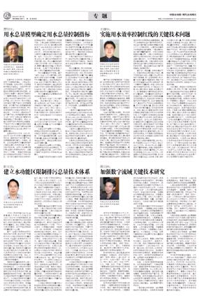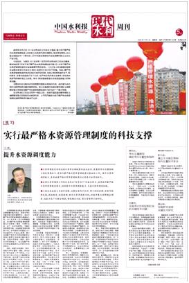实行最严格的水资源管理制度,加快确立水资源开发利用控制、用水效率控制、水功能区限制纳污“三条红线”,是我国今后较长一个时期内必须坚持的水资源基础性公共政策,也是我实验室科研服务于国家治水实践的重要领域。今年初,国务院正式印发了《关于实行最严格水资源管理制度的意见》,标志着我国进入全面推进最严格水资源管理制度建设阶段,从而对于科技支撑提出了迫切的现实需求。2012年7月5日在中央水利工作会议召开一周年之际,中国水利报《现代水利》周刊以两个整版篇幅刊载了流域水循环模拟与调控国家重点实验室主任王浩院士以及实验室学术带头人和骨干贾仰文教授、王建华教授、彭文启教授和蒋云钟教授四位专家对建立健全“实行最严格水资源管理制度的科技支撑体系”提出的重要建议和观点阐释。