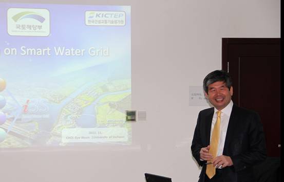 应“国家智能水网工程框架设计”项目组的邀请,韩国仁川大学教授崔桂云(Choi Gye-woon)于2012年11月5日来我实验室进行学术交流,并为实验室研究人员做了题目为“Research on Smart Water Grid”的学术报告。报告会由实验室筹建办主任王建华教高主持。