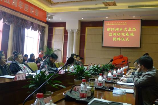 2012年11月18日上午,鄱阳湖水质水量动态监测五周年座谈会在江西星子县召开,座谈会上举行了中国水利水电科学研究院流域水循环模拟与调控国家重点实验室“鄱阳湖水文生态监测研究基地”揭牌仪式。江西省水利厅罗小云副厅长主持揭牌仪式,实验室主任王浩院士和江西省水利厅朱来友副厅长共同为实验室鄱阳湖野外实验基地揭牌,江西省水文局谭国良局长、水利部水文局英爱文总工、长江水利委员会水文局王俊局长、长江流域水资源保护局臧小平副局长、实验室筹建办王建华主任、高菁副主任以及江西省水利厅和水文局相关负责人参加了揭牌仪式。