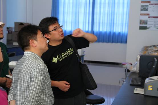 试验站负责人王雨春教高(右)介绍试验站观测内容
