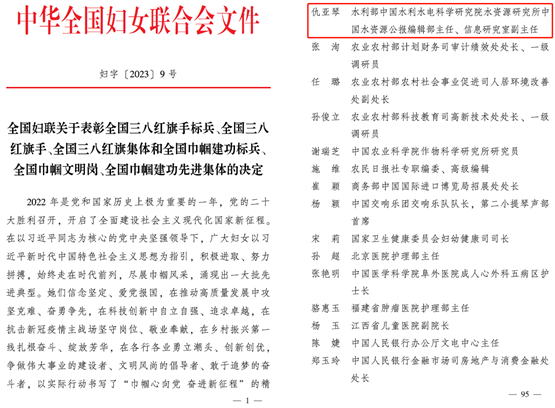 中华全国妇女联合会发布《全国妇联关于表彰全国三八红旗手标兵、全国三八红旗手、全国三八红旗集体和全国巾帼建功标兵、全国巾帼文明岗、全国巾帼建功先进集体的决定》。实验室仇亚琴正高荣获“全国巾帼建功标兵”称号。